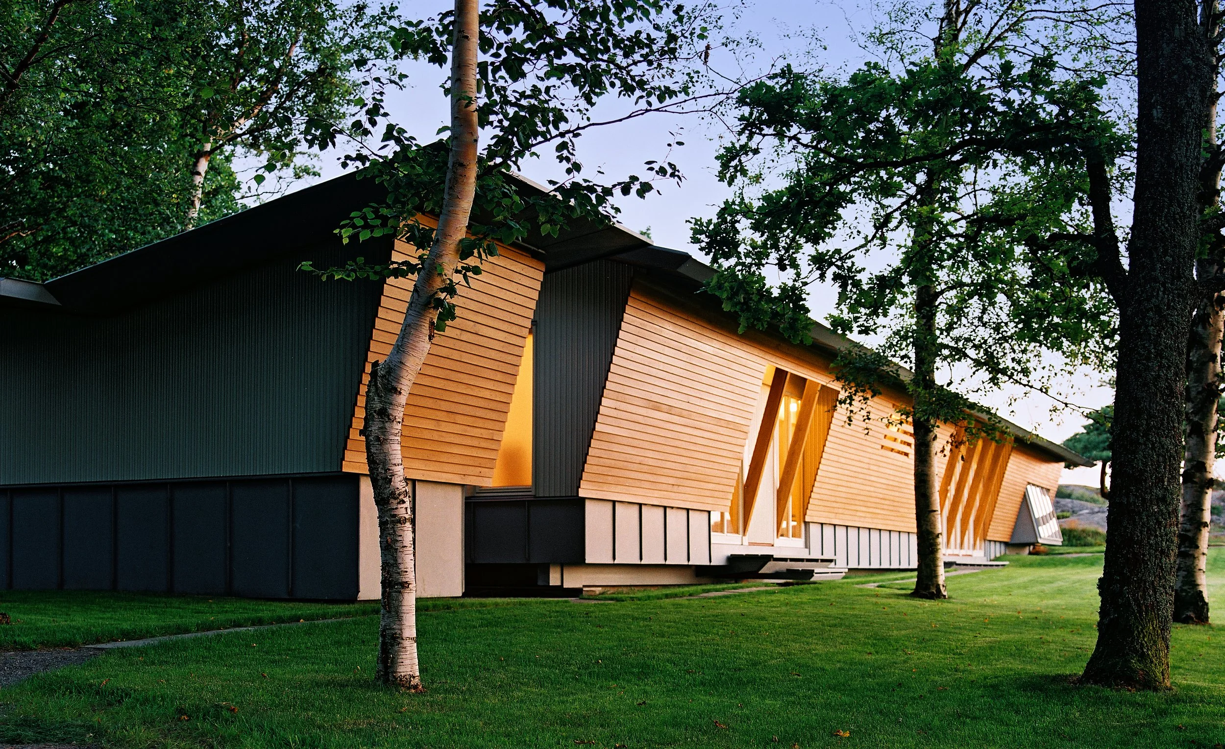Vinduer er plassert gjennom karnapper, tilbaketrukne partier eller ved å fjerne deler av kledningen. Den konseptuelle ideen om en vegg brytes bevisst gjennom byggets snitt, med mål om å skape letthet og bevegelse.