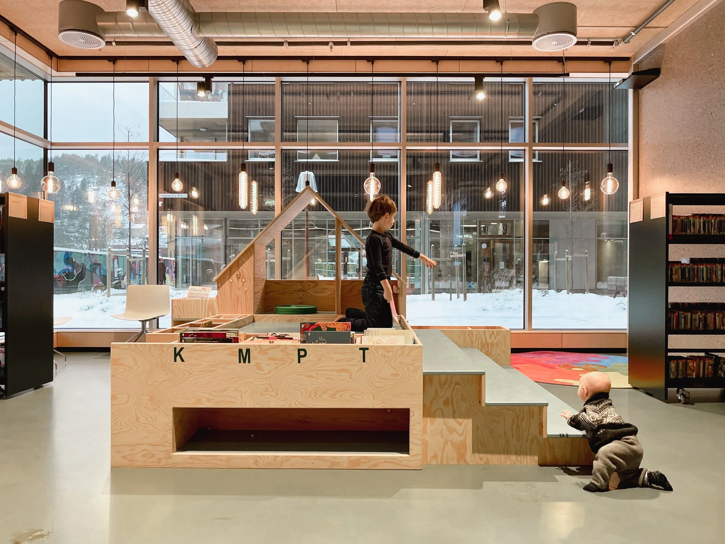 Innbyggertorget inkluderer bibliotek, infotorg, servering, scene/multisal, fleksible møterom, aktivitetsrom og helsestasjon. Romprogrammet er utviklet over fire etasjer med fokus på holdbarhet, bærekraft og fleksibilitet. Arkitekturen er robust og inkluderende, egnet for offentlig bruk, med siktlinjer som gir oversikt og orientering. Det er lagt vekt på å skape gode møteplasser for samtale og konsentrasjon.