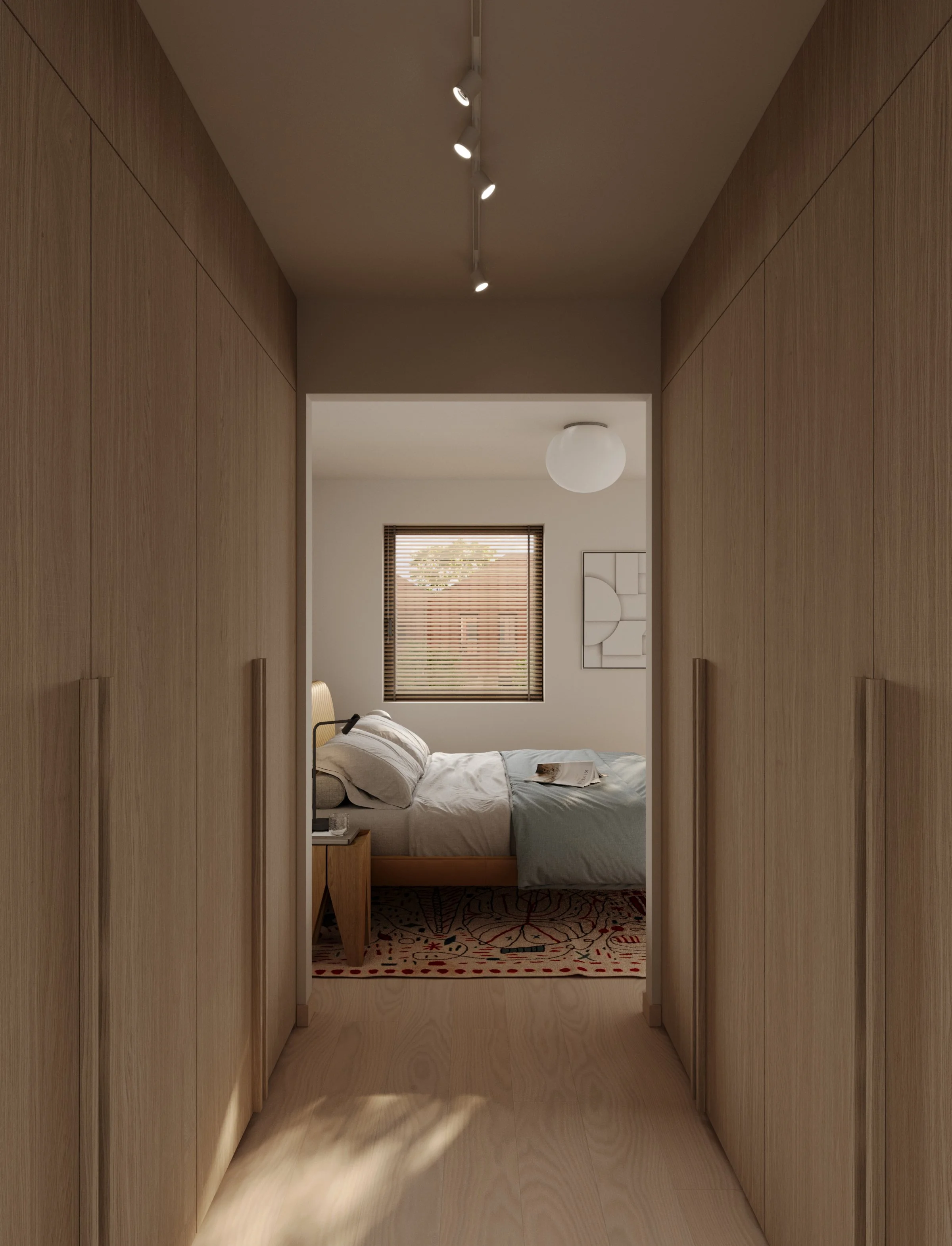 The masterplan emphasizes a lush, community-oriented environment with a strong sense of place. Every home has a private garden that connects directly to shared courtyards and outdoor spaces, fostering both privacy and interaction. Front gardens form a gentle transition between public and private, extending the living areas into the landscape. Kitchens are consistently oriented towards the communal spaces, while all homes benefit from generous, sunlit outdoor terraces.