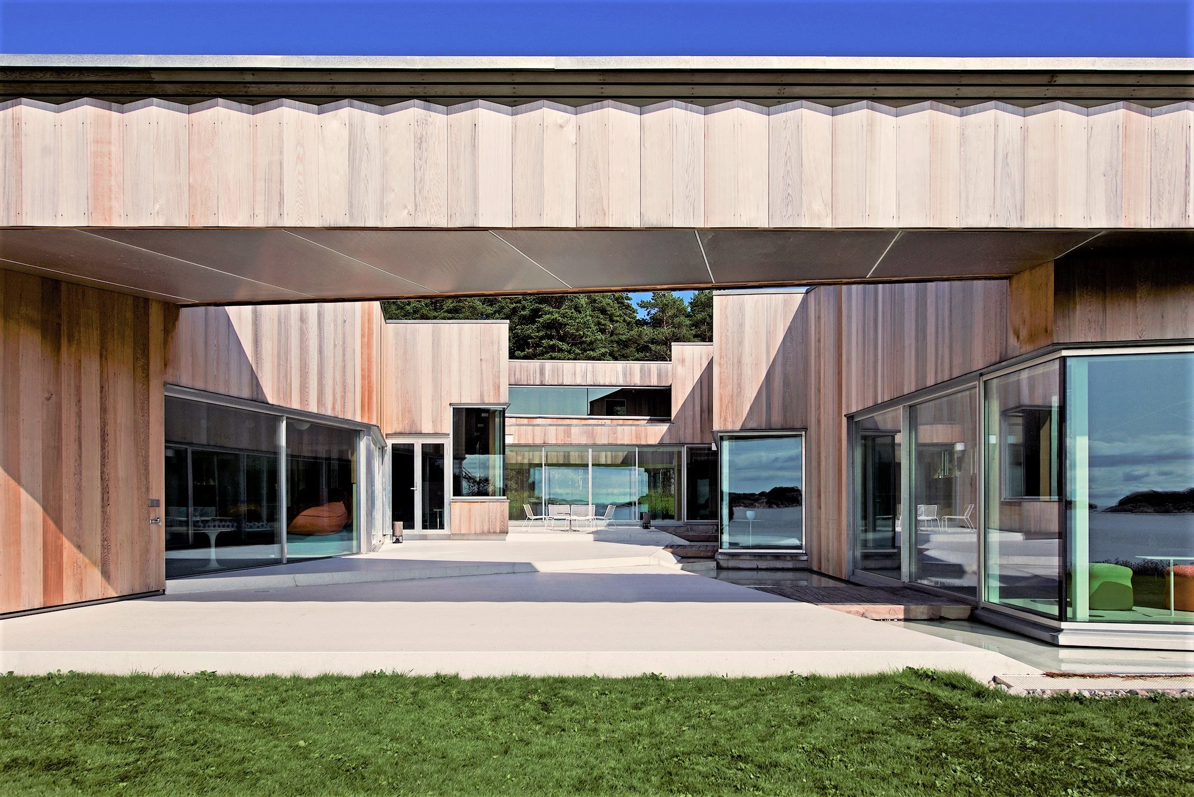 The Cedar cladding is highly durable in the harsh seaside climate, and is used both indoor and on outdoor to strengthen the intension of connecting the internal spaces with the courtyard. The external claddings zig-zagged geometry is intended to define a smaller scale within the long facade, and relate to the geometry of the outdoor, inside space of the house.