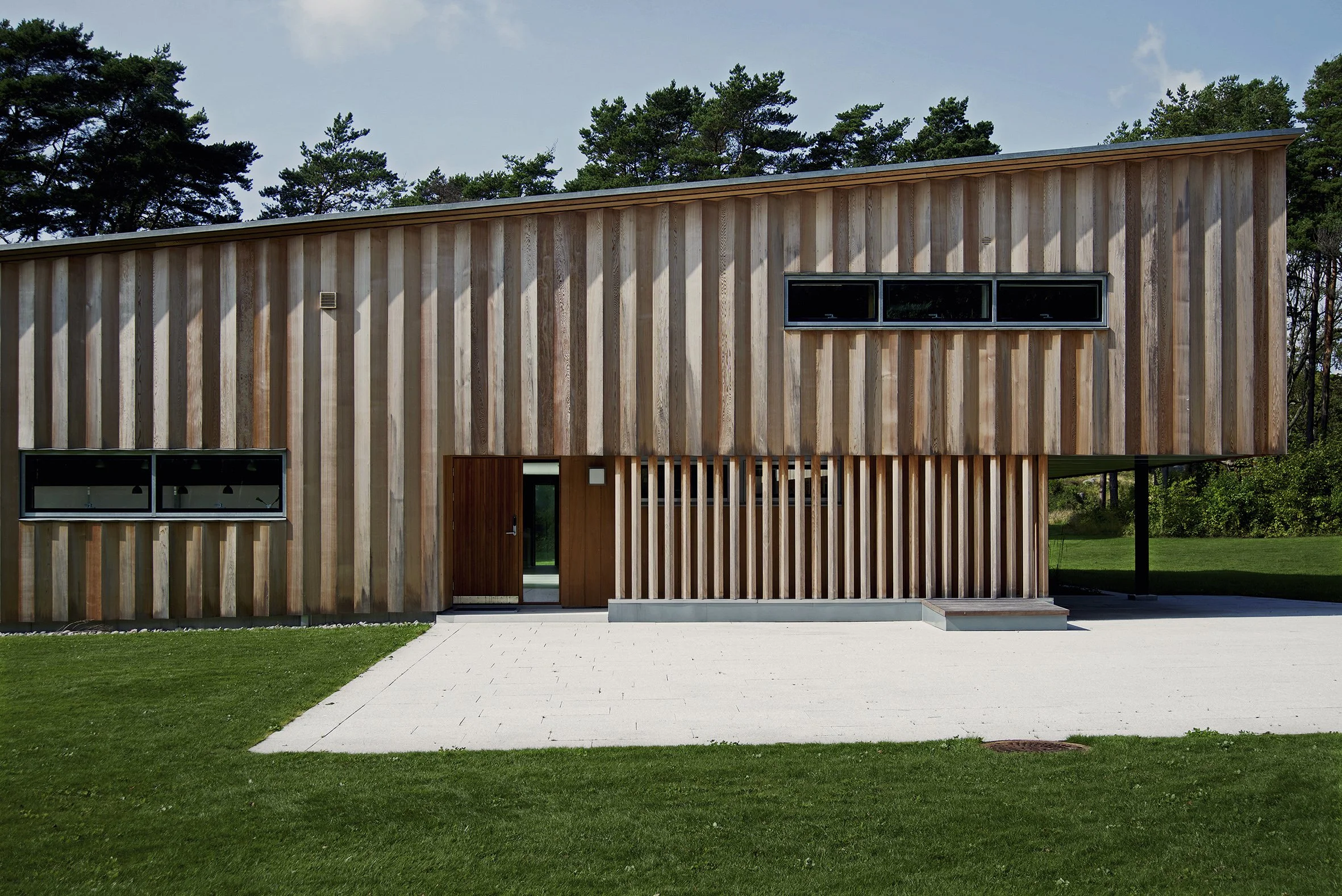 The site is located close to the sea on the south coast of Norway. The house is placed in clearing of a surrounding forest where the terrain is calmly sloping towards the water.
