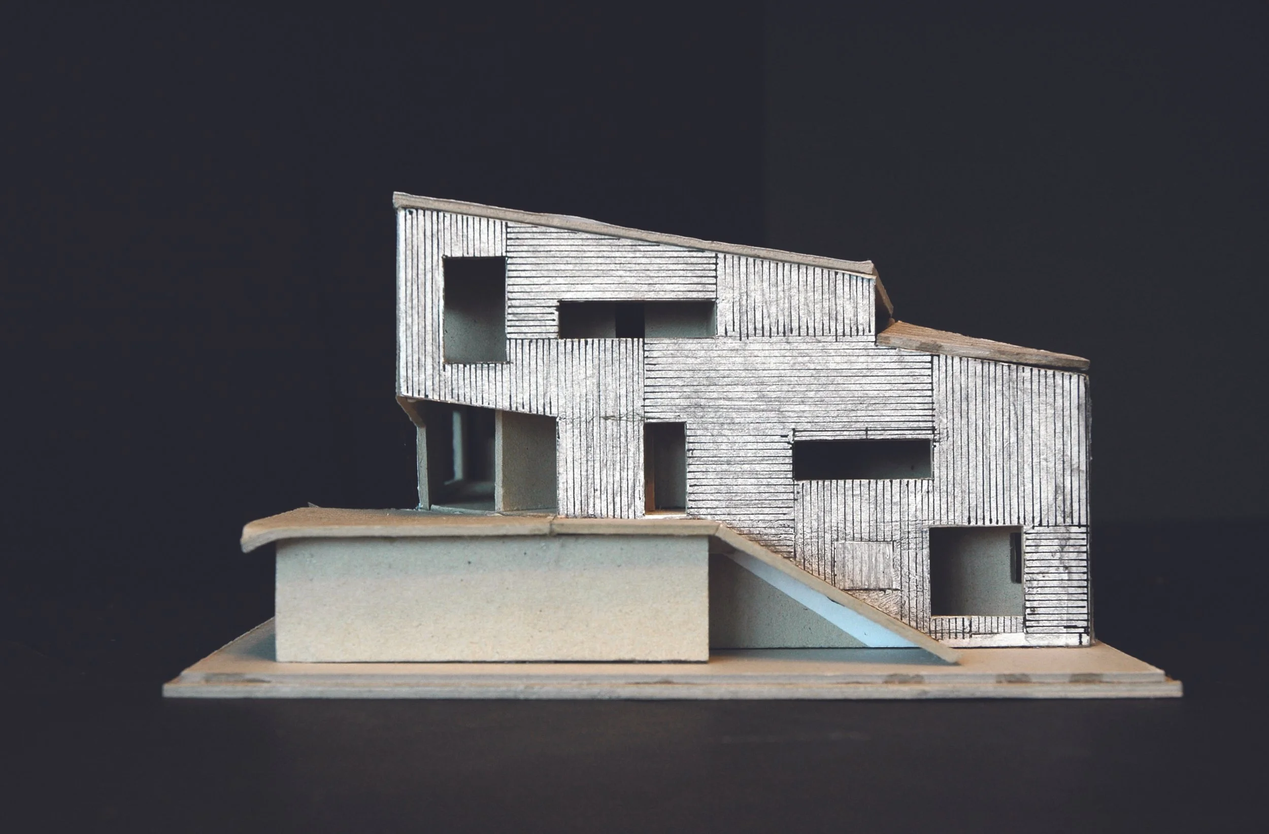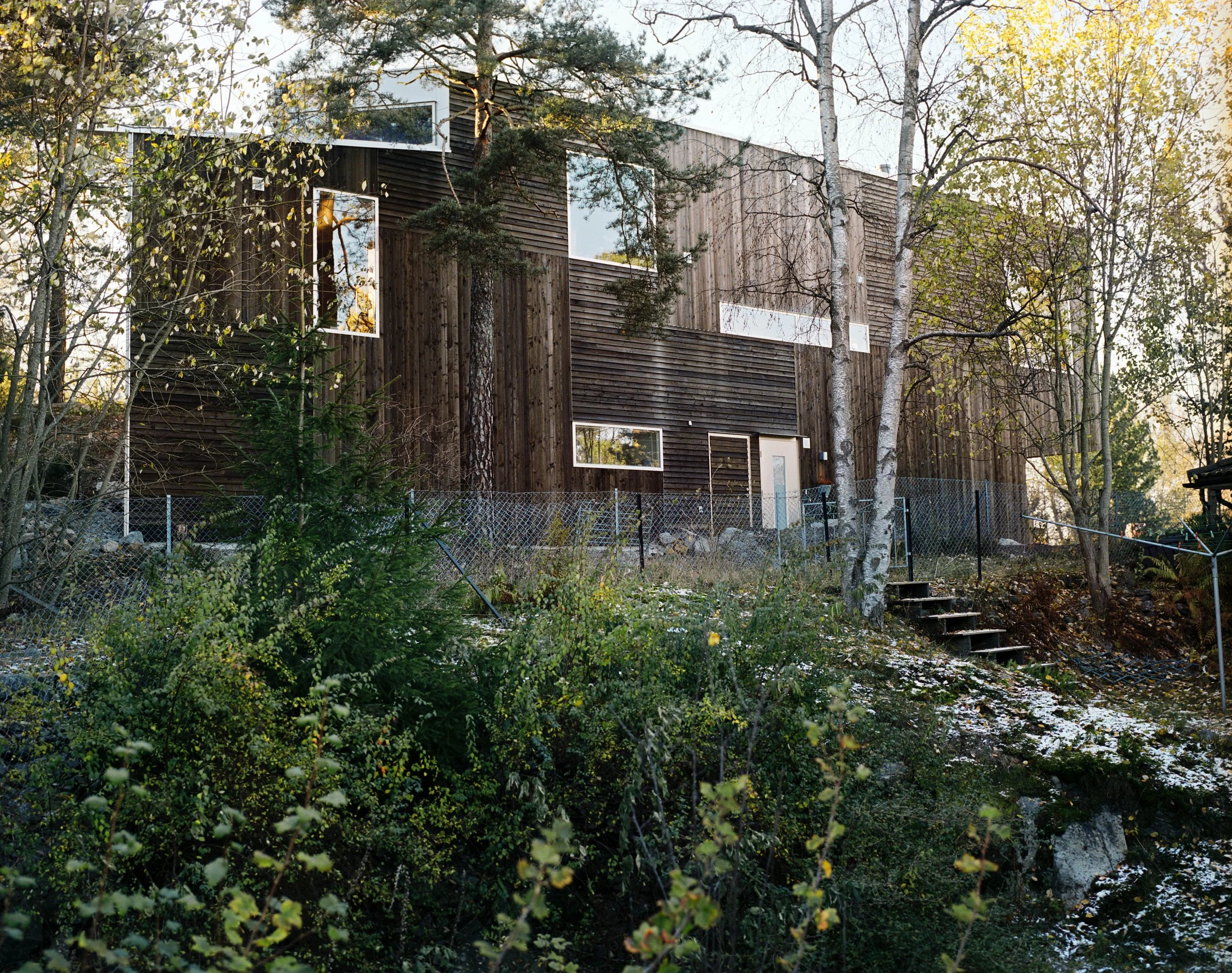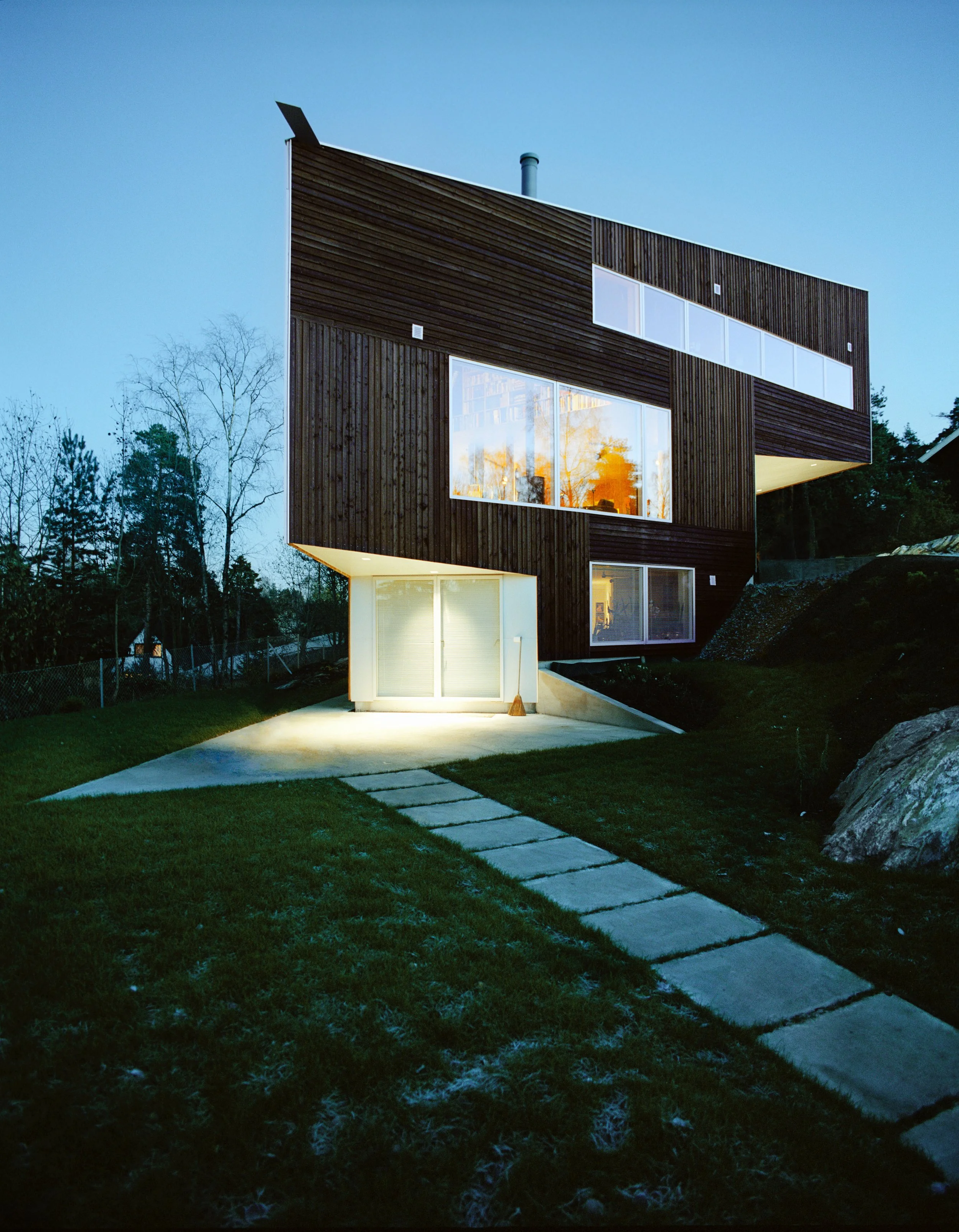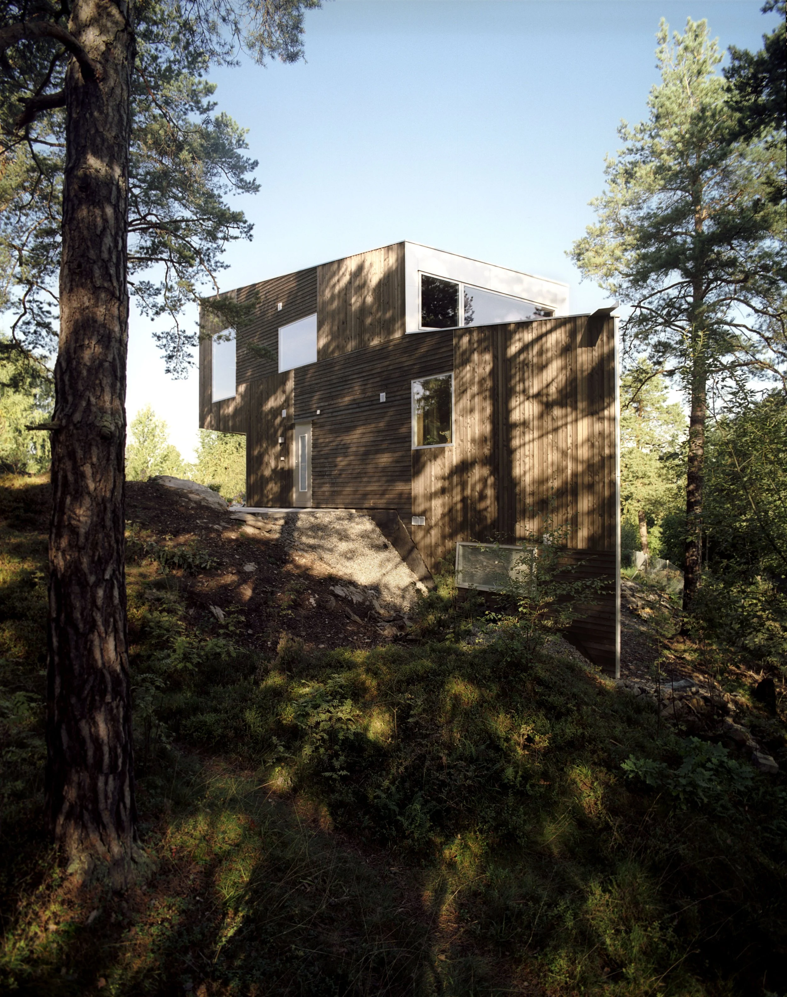 This house is situated with views towards the Oslo fjord between the branches of the surrounding pine-forest. The permitted aerial building lines define the perimeter of the plan and even the heights of the roofline.